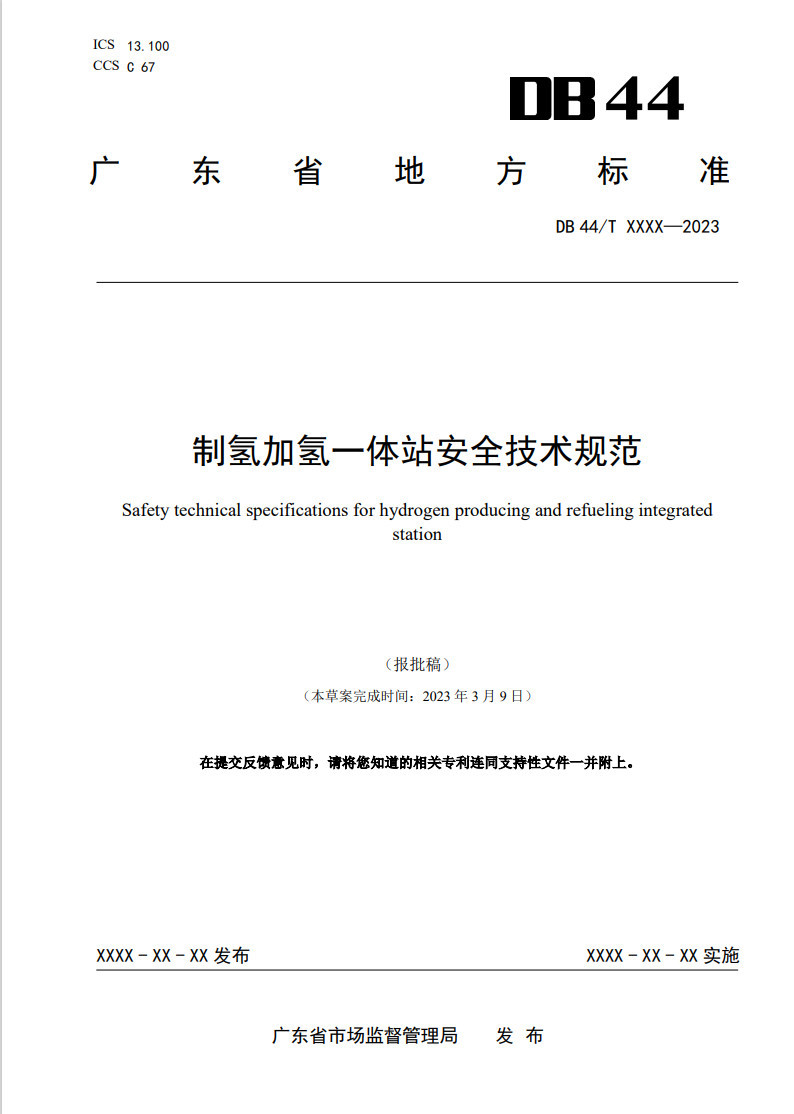 5月6日,廣東省應(yīng)急管理廳發(fā)布了關(guān)于征求《制氫加氫一體站安全技術(shù)規(guī)范(報(bào)批稿)》地方標(biāo)準(zhǔn)意見的公告。