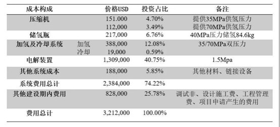 The cost of hydrogen production by water electrolysis is mainly the cost of electricity, which consumes about 5 kilowatt hours of electricity per cubic meter of hydrogen production. Although some hydrogen and hydrogenation stations by water will adopt the strategy of hydrogen and light complementarity, they are still inseparable from mains. Domestic thermal power accounts for 70% of the municipal power generation, which means that most of the hydrogen produced is grey hydrogen. This also means that the cost of producing per kilogram of hydrogen will reach about 60 yuan. The investment includes construction cost, hydrogen production equipment (electrolysis device), hydrogen purification, compression equipment (compressor), hydrogen storage equipment (hydrogen storage bottle) and hydrogenation equipment (hydrogenation and cooling system) and other aspects. The cost composition is as follows: